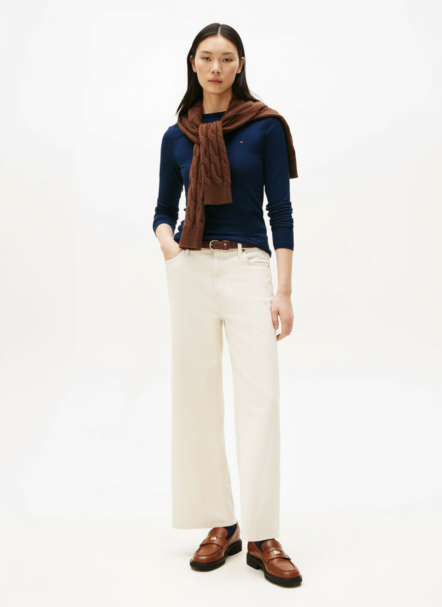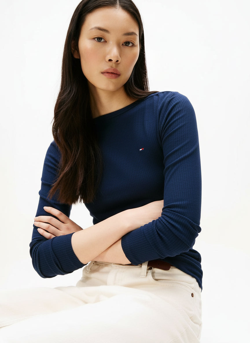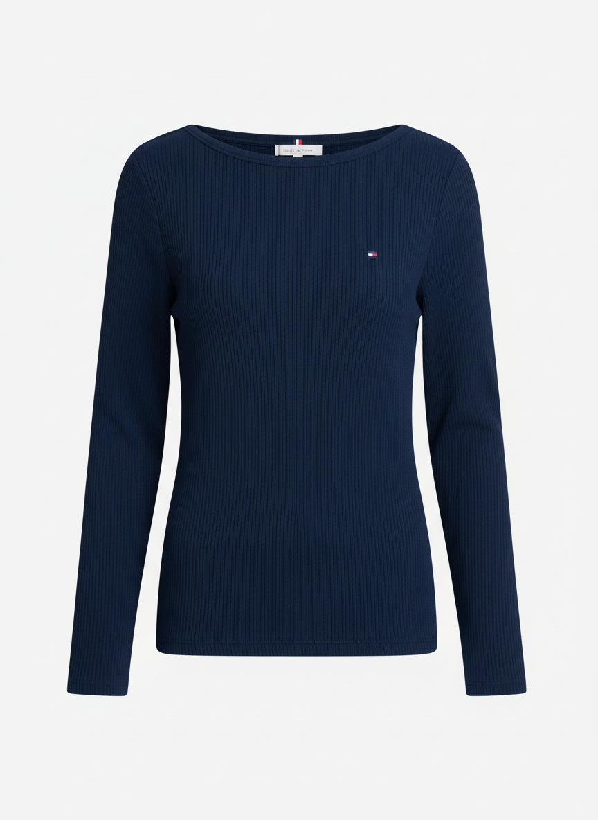 This long-sleeved T-shirt delivers refined style with its sleek boat neckline, all-over ribbed texture and figure-hugging slim fit.