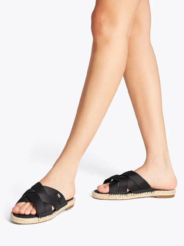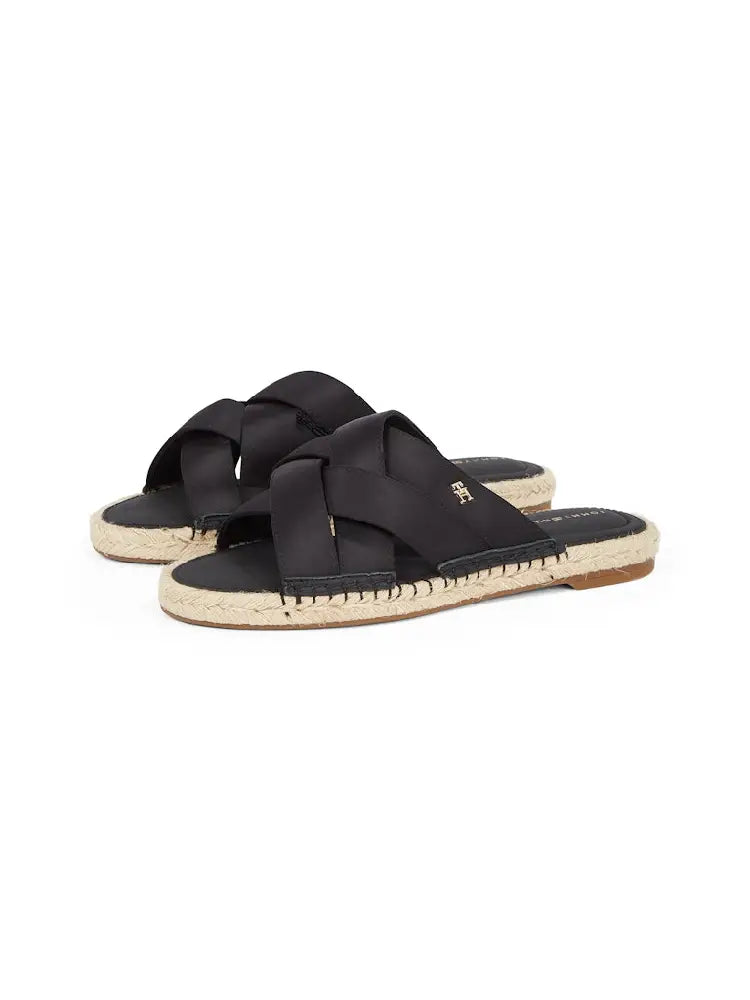 The traditional espadrille style gets a luxurious update via these slip-on mules, which feature smooth satin crossover straps.