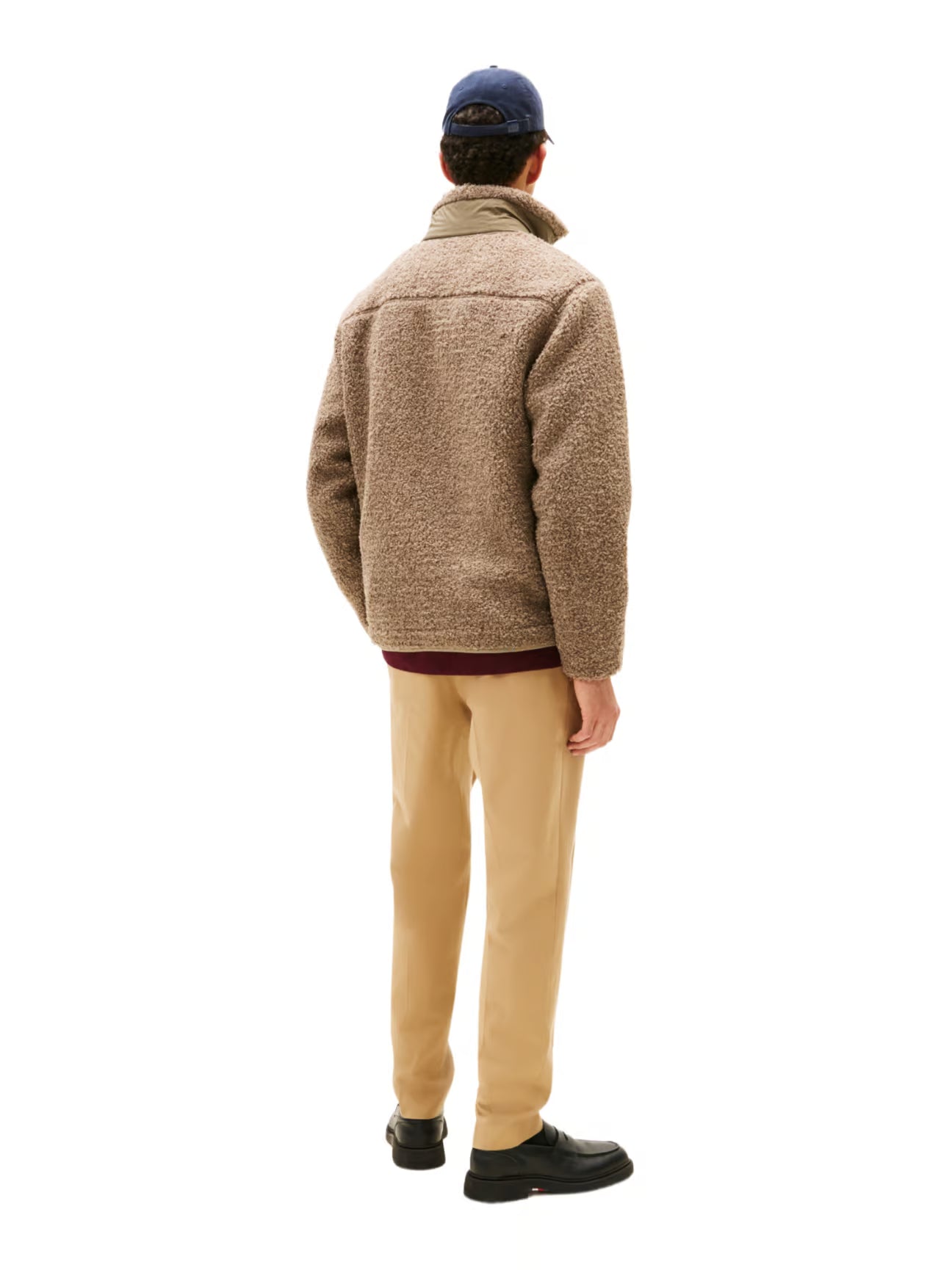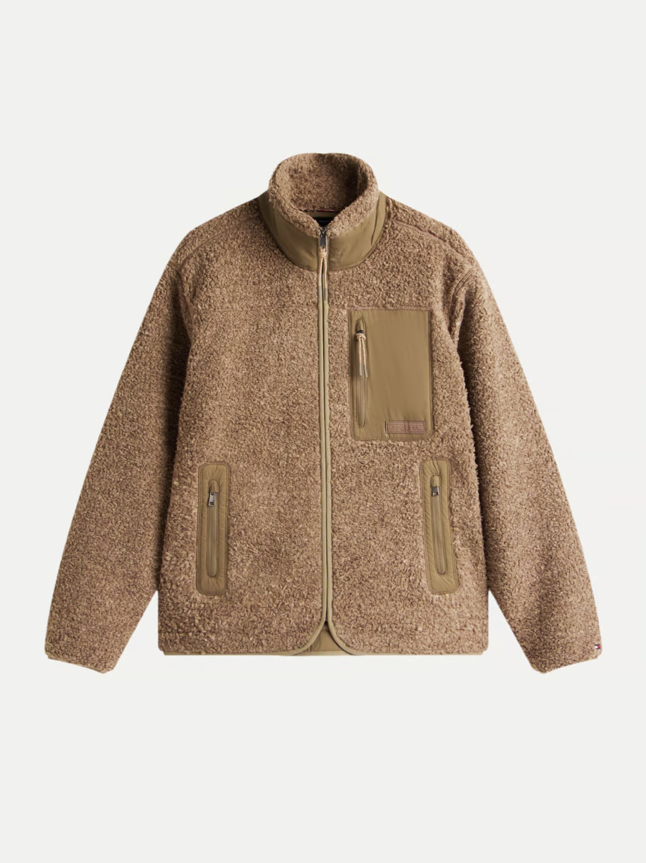 Add a layer of warmth with this teddy fleece jacket, featuring tonal mixed texture pockets and trims for a premium finish.