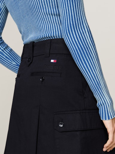 This mini women's skirt will give you utility style thanks to the side cargo pockets, while the pleats make it an elegant piece for your collection.