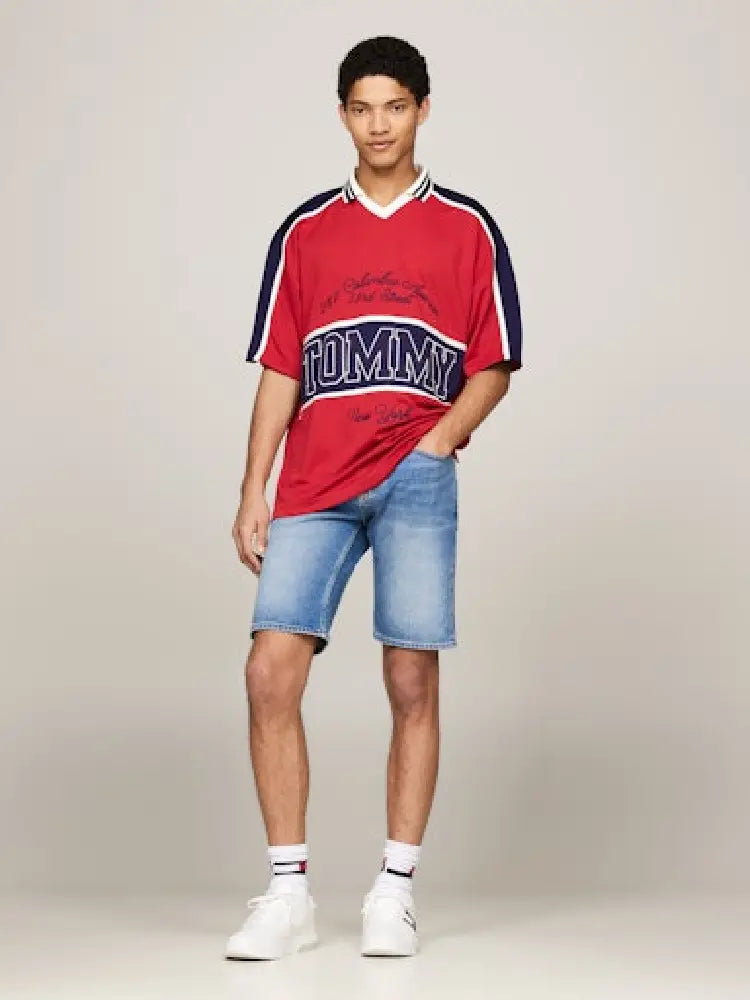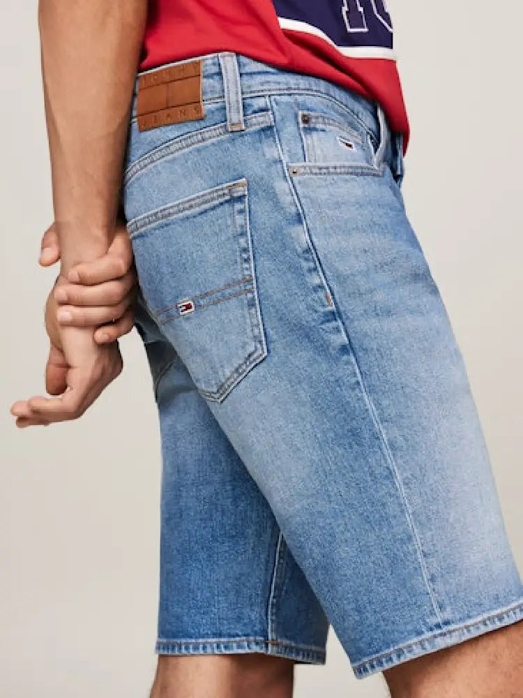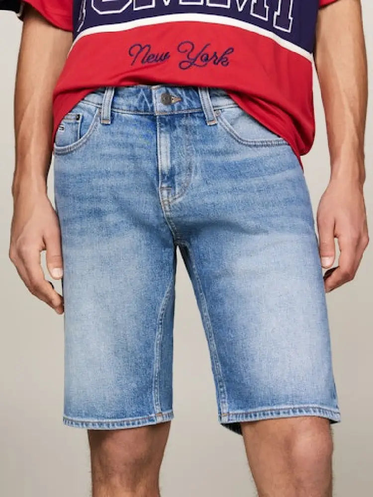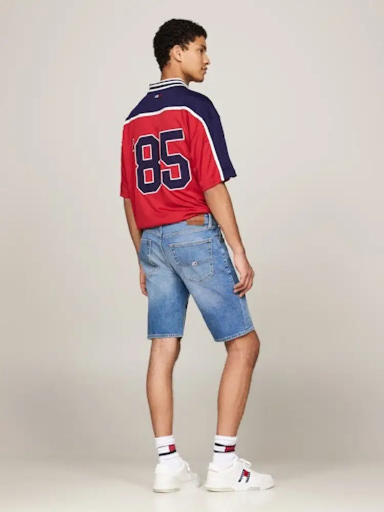 For warm-weather styling, these denim shorts are just the thing thanks to their faded accents and subtle branding.