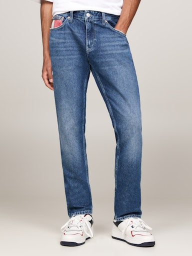 For casual style, wear these faded slim-fit jeans, with an eye-catching iconic detail on the coin pocket.