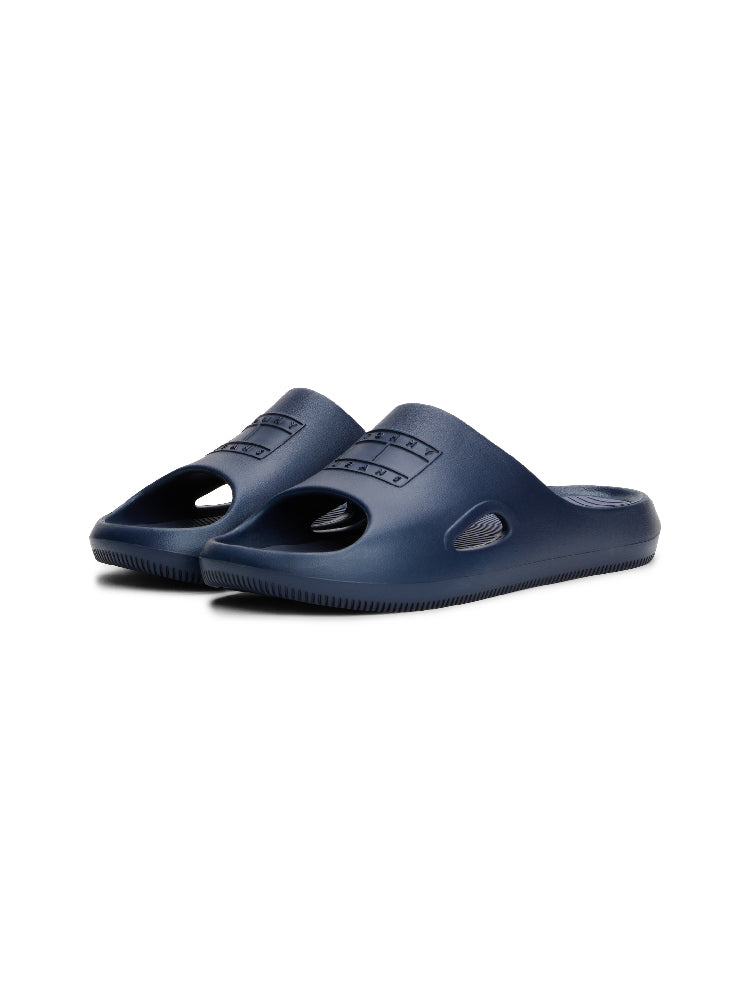 Curved lines and cut-outs draw the original silhouette of these sporty slides. Embossed branding lends them an iconic touch.